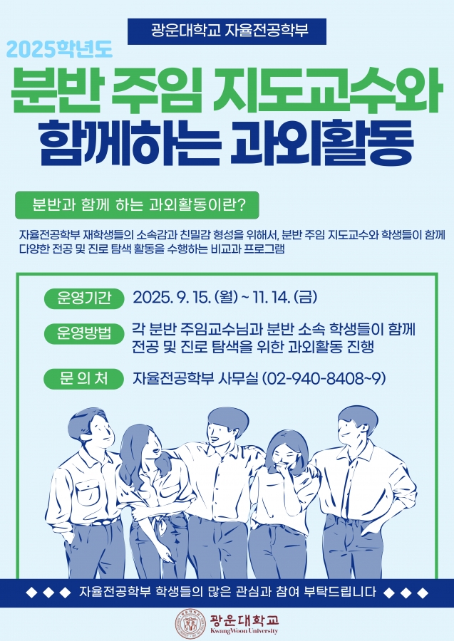 [비교과] 2025 자율전공학부 분반 주임 지도교수와 함께하는 과외활동 안내