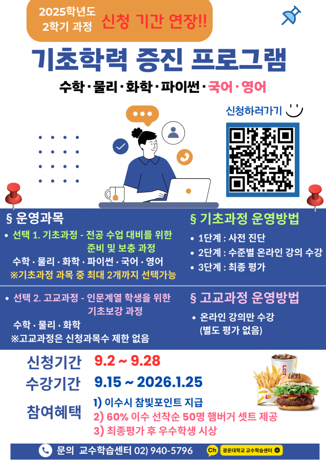 교육혁신원 교수학습센터에서 광운대학교 재학생을 위한 기초학력 증진 프로그램 2학기 과정을 운영합니다.