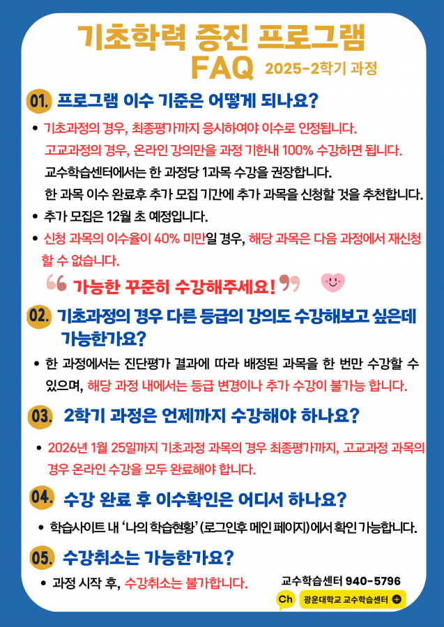2025학년도 2학기 기초학력 증진 프로그램 신청 안내