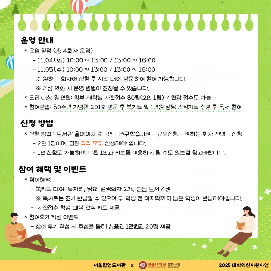 * 신청 시간 중 가볍게 독서도 가능합니다. (30분 독서 가능)